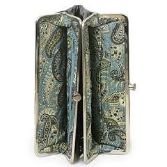 Medium size clutch made of soft leather. Two top frame compartments both with clasp closure. Interior compartment with three card slots, a zip pocket and ID holder with covered magnetic tab closure. Dimensions: 8 1/2 inch wide x 5 inch high.